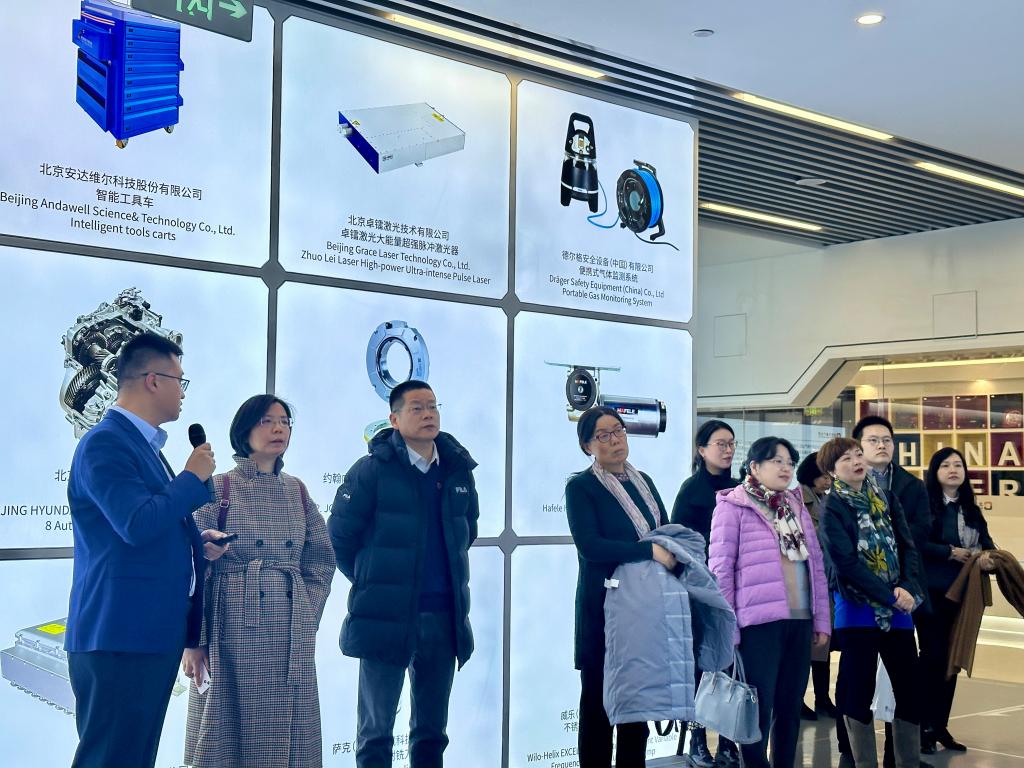 在北京中德产业园运营公司副总经理孙海龙的引导下,ky开元集团官网教师党支部一行详细了解了产业园在搭建国家级对德合作平台、服务国家级对德合作项目、链接全国对德合作资源等方面的建设成果。北京中德产业园是国家发改委批复的国内首个以“经济技术合作”为主题的中德示范区。园区定位为“德国先进制造业的聚集地、中德隐形冠军发展的战略高地、中德交往与开放创新的重要窗口”,聚焦新能源智能汽车、智能装备、数字经济三大主导产业,和先进制造服务业支撑产业,已集聚奔驰、宝马、Ameco、博世、威乐水泵等90余家德资企业,年产值350亿元。