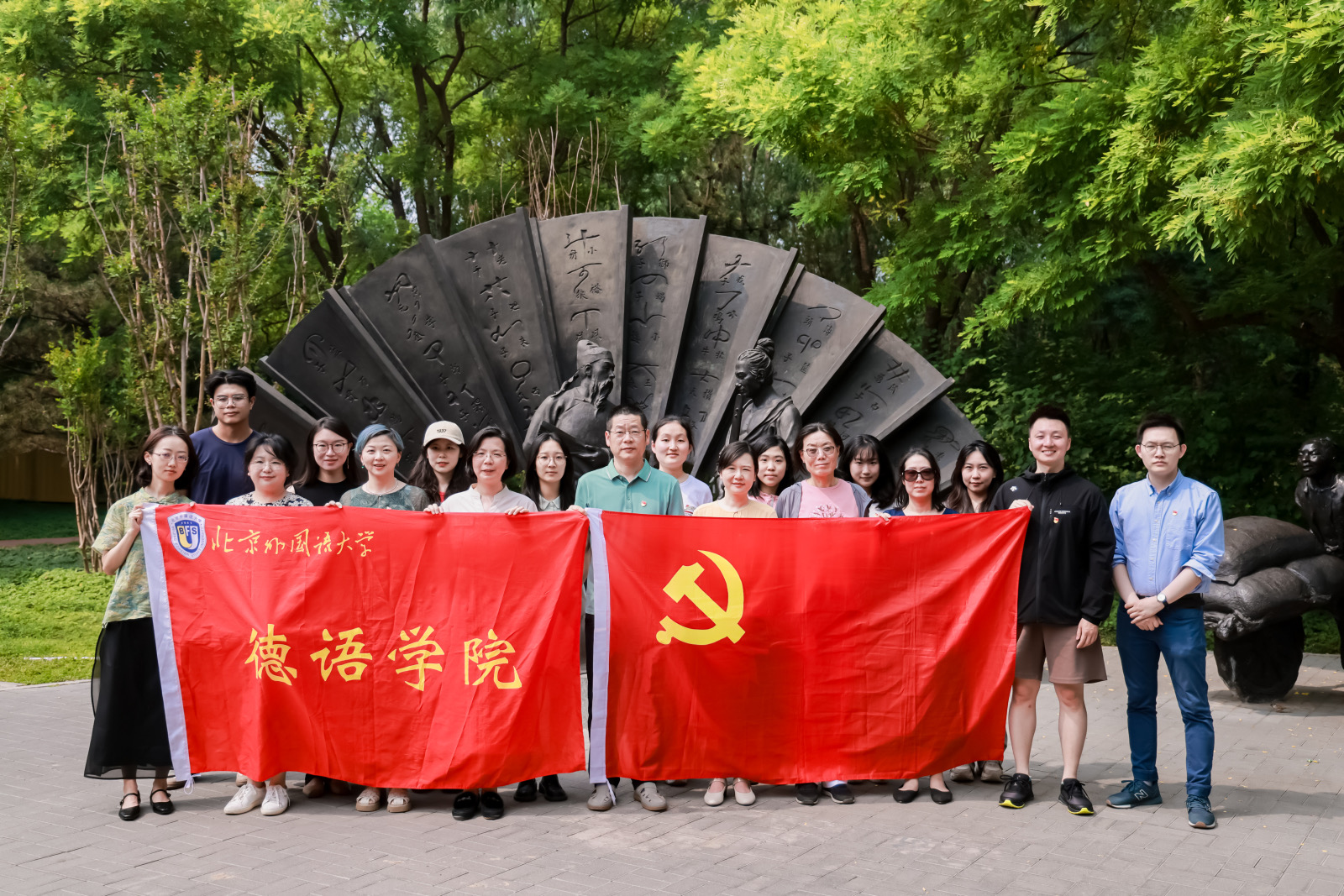 在运河森林公园矗立的通州第一个党支部纪念碑,展示了通州第一个党支部书记周文彬与其他党员的坚毅形象。在国民党的白色恐怖下,周文彬烈士排除万难,创建并成立了中共潞河中学党支部,这也是通州建立的第一个中国共产党党支部。通过老师的细致讲解,我们学习了革命先烈们的英雄事迹,深刻体会到革命事业之艰苦,和平安宁之难得,敬仰与缅怀之情油然而生;他们坚定信念、无私奉献的精神,也激励着我们在未来的学习生活中不断前行。