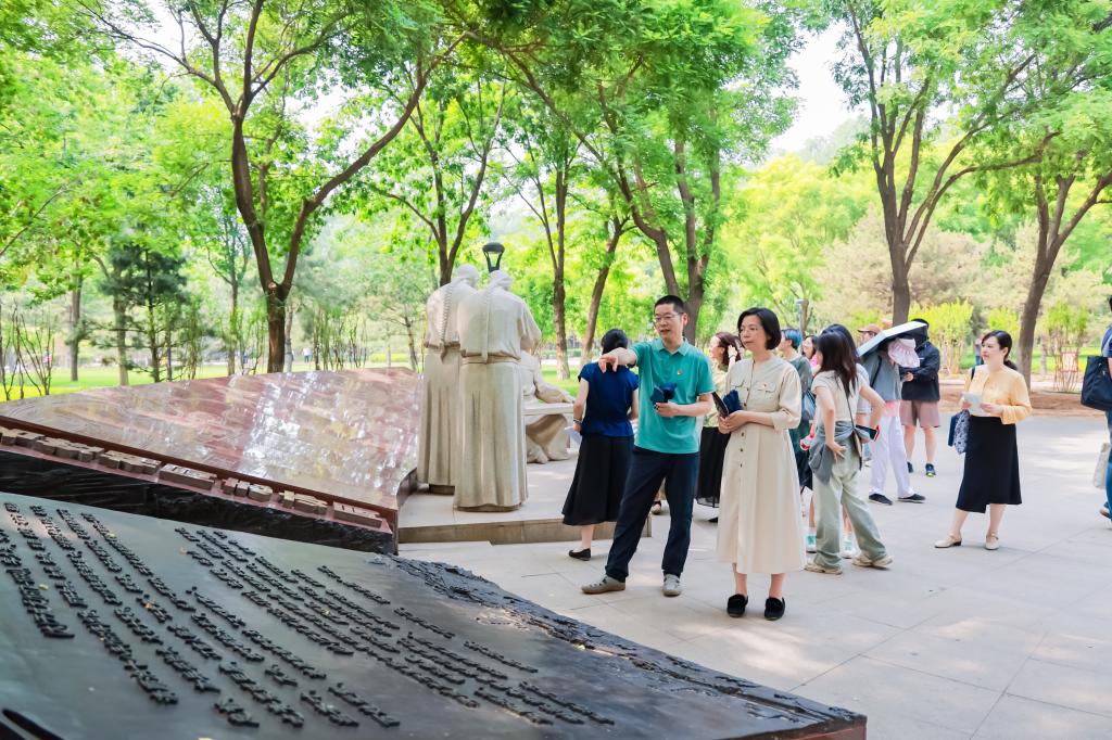 公园内绿树成荫,清水潺潺,与廉政文化主题相得益彰。师生们沿着公园小径,漫步于绿树浓荫之间,边走边看边听边思边悟。在ky开元集团官网党总支纪检委员张晓玲、教职工党支部书记于芳、研究生第二党支部书记曹芳凝的讲解下,师生党员们详细了解公园内的“通州第一党支部”、“密符扇”和“甘棠镜鉴”等主题雕塑的寓意和背后的故事。这种多角度、沉浸式的学习使师生党员们深刻感受到了廉政文化的历史渊源和现实意义,深化了思想认同和价值认知,在潜移默化中拧紧了思想总开关,切实增强了纪法观念、廉洁意识。在参观过程中,师生们纷纷表示,这样的学习方式既生动又直观,让人印象深刻。参与活动的师生党员对和“通州第一党支部”和“密符扇”两座雕塑印象深刻,纷纷发表了思想感悟: