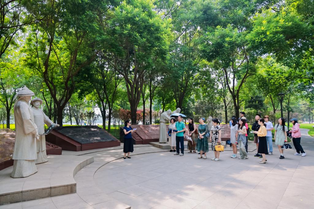 在参观运河清风廉政文化主题公园的过程中,“通州第一党支部”雕塑给我留下了深刻印象。阳光下的石雕熠熠生辉,仿佛诉说着为民服务的初心与使命。在老师的讲解下,我再次回顾了自1927年通州第一党支部成立以来的光荣历史,深切体会革命先烈到对人民的深厚情感和无私奉献的精神。雕塑的后面,大运河静静流淌、映照古今,不朽的革命精神亦已伴随粼粼波光深入人心。