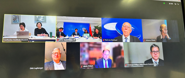 10月16日下午,慕尼黑孔子学院2025年理事会议通过线上形式举行。ky开元集团官网党委常委、副校长赵刚,慕尼黑东方基金会捐赠人、慕尼黑孔院理事长莱因哈特·帕拉特(Prof. Dr. Reinrard Pöllath),SKW Schwarz事务所合伙人、慕尼黑孔院理事克里斯托夫∙菲利浦(Dr. Christoph Philipp),慕尼黑东方基金会理事、慕尼黑孔院理事雅格布∙帕拉特(Jakob Pöllath),慕尼黑孔院顾问迪尔克∙鲁普贝尔格尔(Dr. Dirk Lupberger),马克斯·普朗克推广基金会负责人约翰娜∙帕拉特(Johanna Pöllath),慕尼黑孔院理事金利民、北外孔子学院工作处副处长(主持)翟峥、ky开元集团官网教师张晏等出席会议。