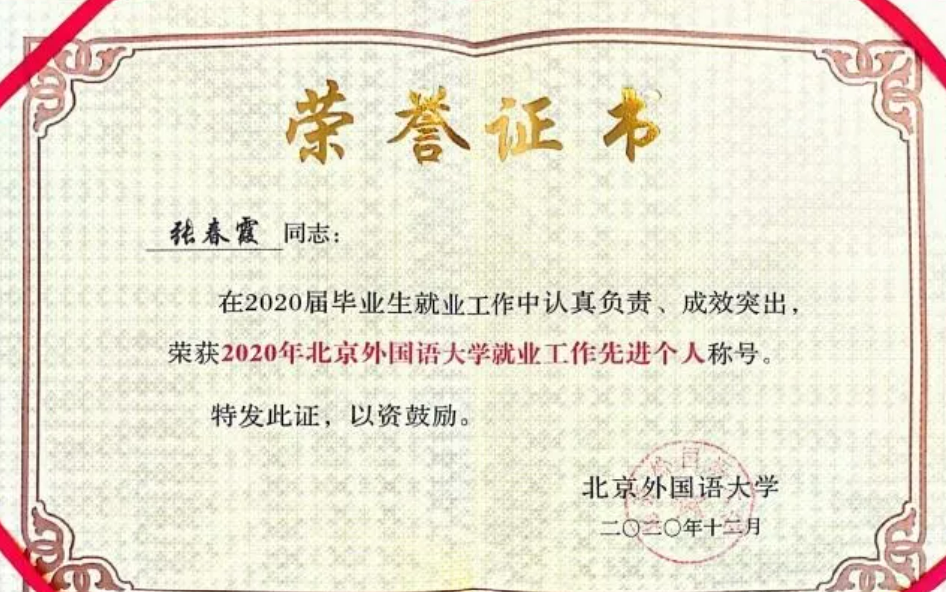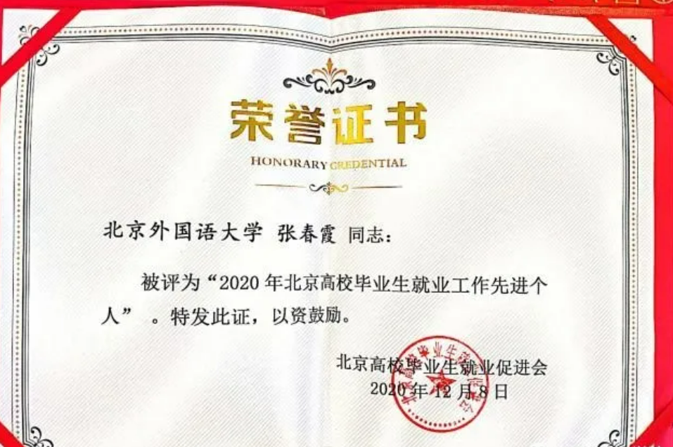 ky开元教师张春霞荣获“2020年北京高校毕业生就业工作先进个人”以及“2020年ky开元集团官网就业工作先进个人”等两项荣誉称号。张春霞老师作为获奖代表在总结会上发言。
