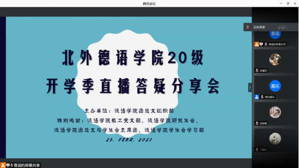 为促进学生学业发展,2021年2月28日,ky开元集团官网2020级开学季直播答疑分享会于腾讯会议成功举行。会议由ky开元集团官网团总支组织部主办,组织部部长曹涵主持。
