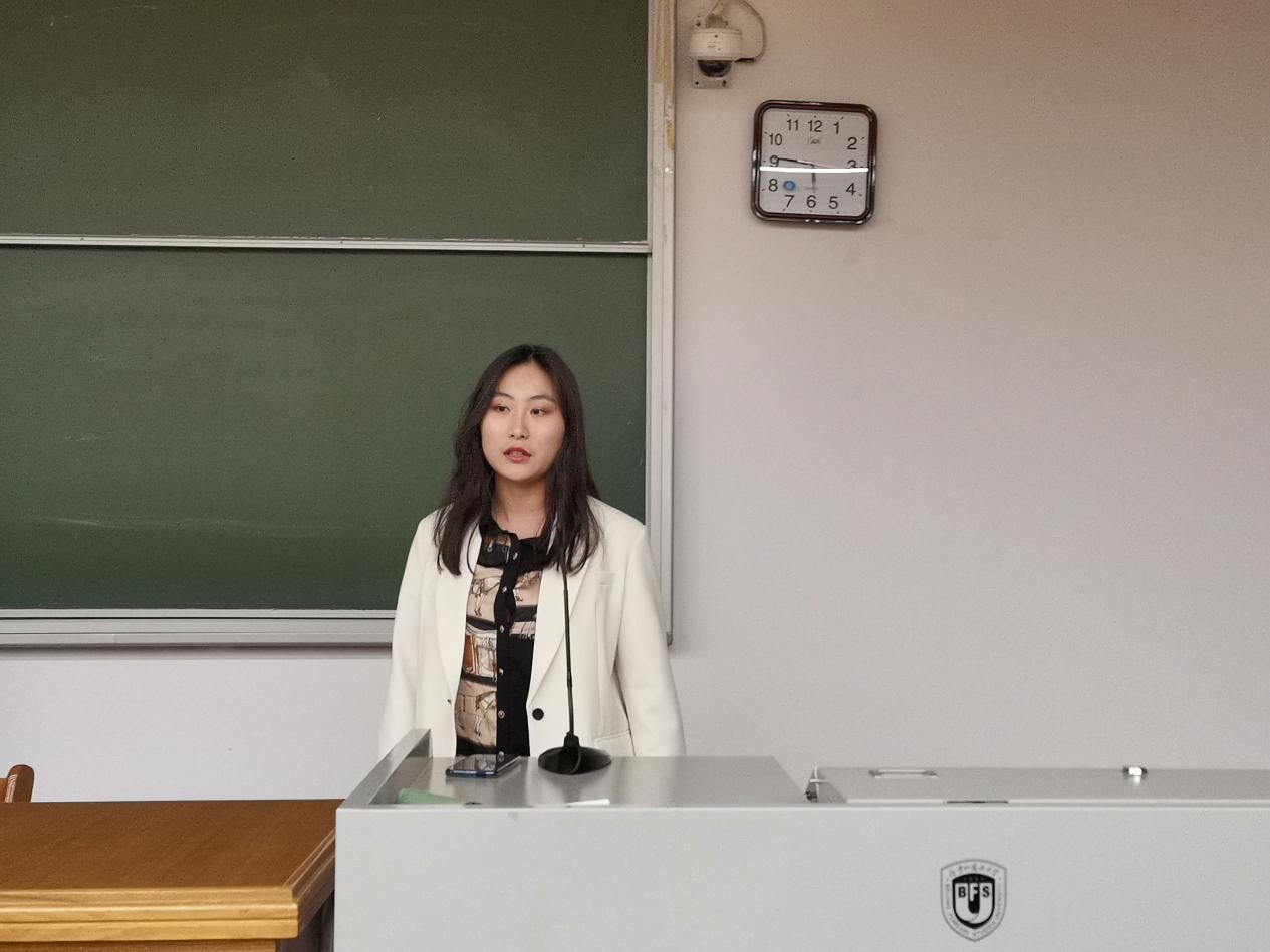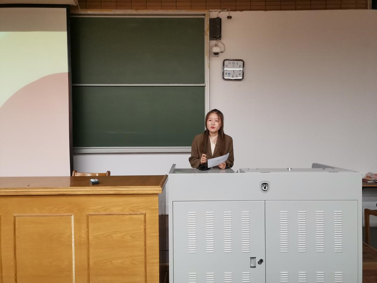 第三位竞选人是来自2002班、现任学生会学习部干事的李佳棋。她从“工作经历、竞选目的、工作计划”三个部分展开竞选演讲。作为学习部干事,她讲述了对未来工作的展望,并就如何提高同学活动参与度和积极性提出了很多建议。