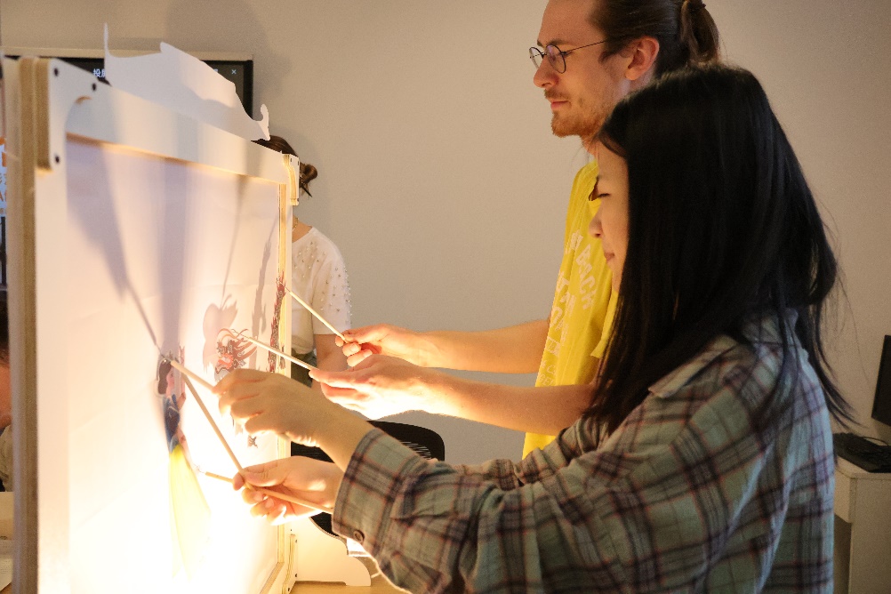 北外ky开元集团官网本硕博共12名学生参与了此次活动,并就正在开展的大学生创新实践项目进行了特色分享。学生们首先详细讲解了“空竹”和“皮影戏”的发展历史和基本知识,随后进行了精彩的表演。空竹的灵动和皮影戏的戏剧魅力让基尔大学的师生们印象深刻。接着,中德两国学生一起体验了皮影制作过程和空竹表演,通过亲身参与,学生们不仅学到了新技能,更在互动中增进了友谊。