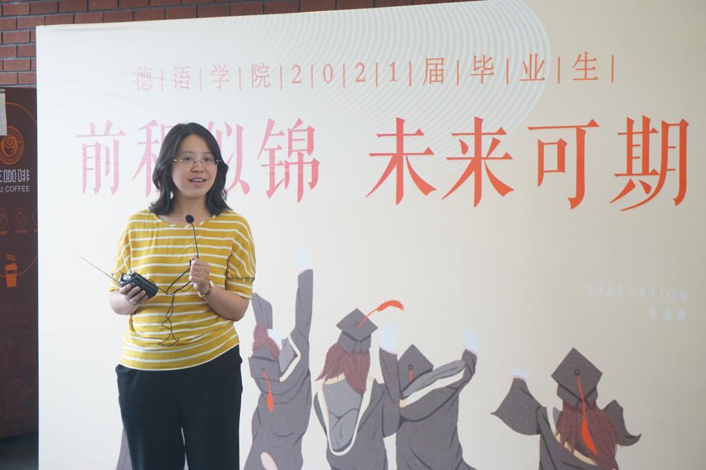 基础教研室主任李婧深情回忆了浓浓的师生情谊,祝愿毕业生未来一帆风顺。