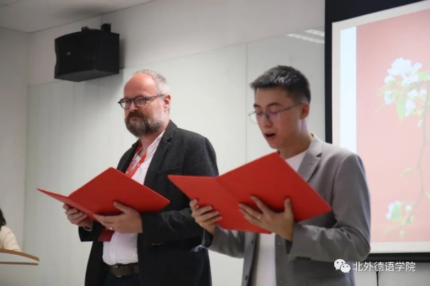 Henrik Dittmann先生与姜浩远同学共同朗诵诗歌Septembermorgen