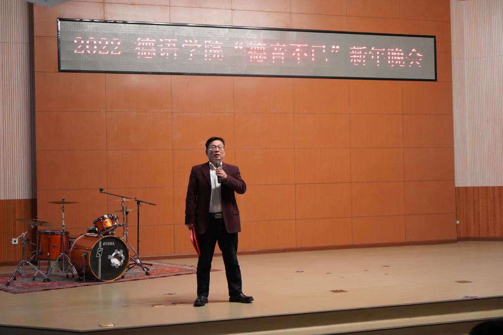 晚会还穿插互动小游戏,观众们也参与其中,真正达到了师生同乐。正如党总支书记常秀鹏在晚会结束致辞中提到,希望同学们在“严谨的德语学习同时,也拥有丰富多彩的学生活动。”