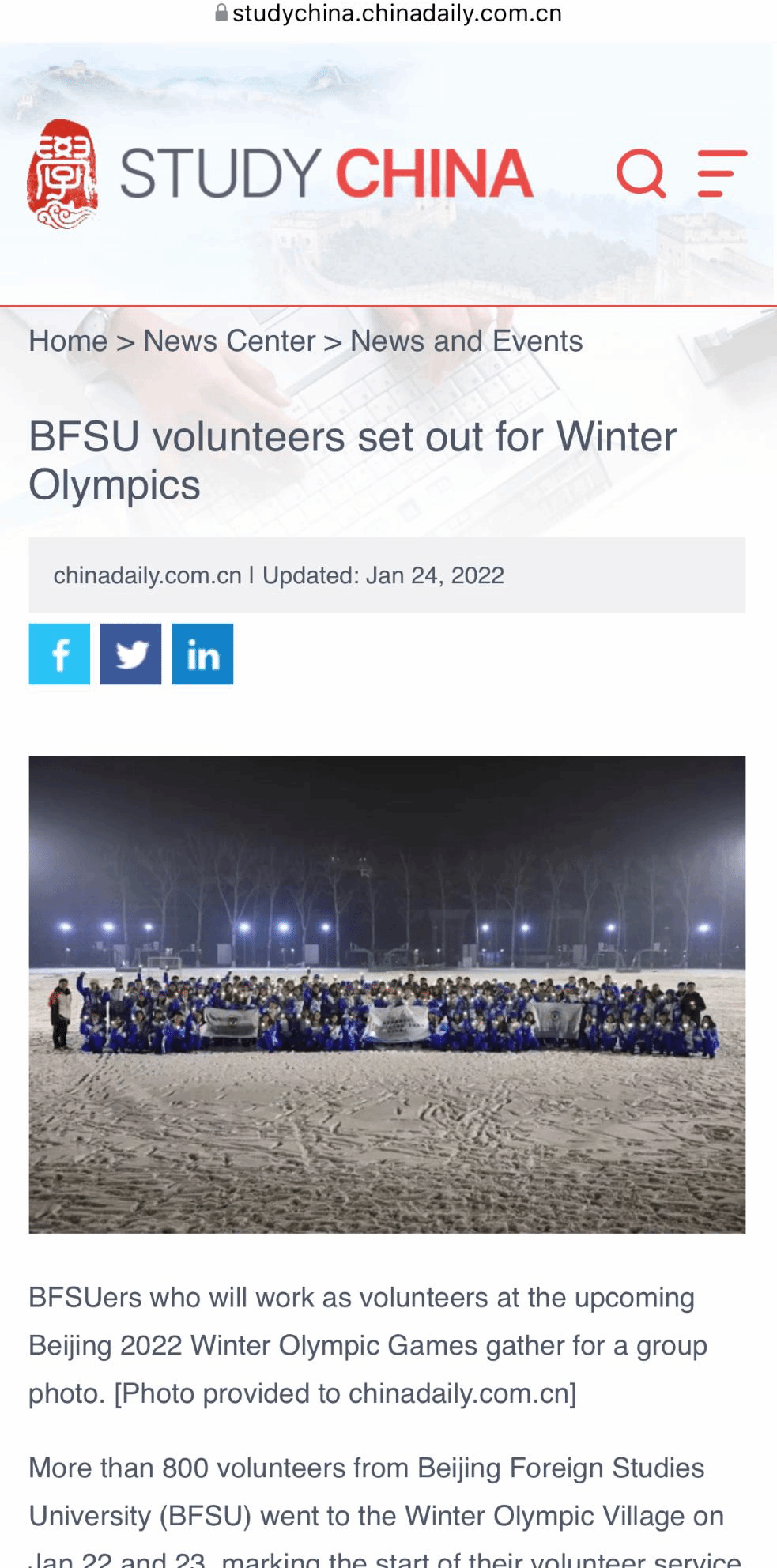 除去多语言呼叫中心的志愿者服务工作之外,我同时承担青年传媒中心负责人的重任,去年10月结束了校庆相关的报道工作之后,我就马不停蹄地率领团队继续跟踪报道北外冬奥志愿者,到今天已经进入了第五个月。用新闻的视角去挖掘、发现和报道志愿者培训、工作和生活,见证了每一场活动台前幕后,陪伴着每一位志愿者共同走过这段激情澎湃的岁月。