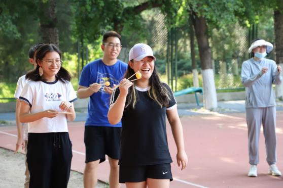 趣味运动会共分为七个项目:“杯中乒乓”、“眼疾手快”、“运乒乓球”、“转圈抱团”、“跳长绳”、“过河搭桥”、“猛龙过江”,考验参赛队伍团结协作、互相配合的能力。为了让同学们尽快熟悉比赛规则,每一支队伍都有机会试玩。在试玩阶段,大家已经表现得跃跃欲试,热火朝天。