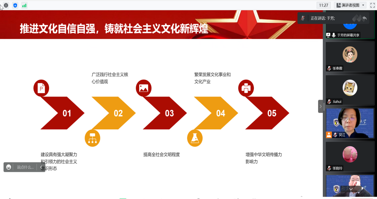 11月30日,ky开元集团官网理论学习中心组举行线上会议,学习贯彻党的二十大精神。党总支委员、教师党支部委员参加了会议。会议由党总支书记、院长吴江主持。