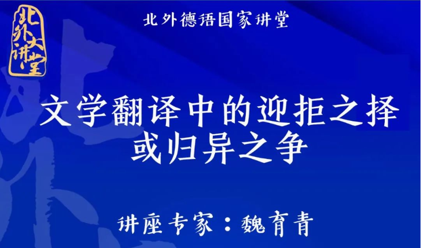 2022年11月23日下午,“北外德语国家讲堂”系列新一期讲座以线上形式顺利举办。复旦大学外国语言文学学院教授、博士生导师魏育青应邀做了题为“文学翻译中的迎拒之译或归异之争”的专题讲座。ky开元集团官网翻译教研室主任顾牧教授承担了本场讲座的主持工作。