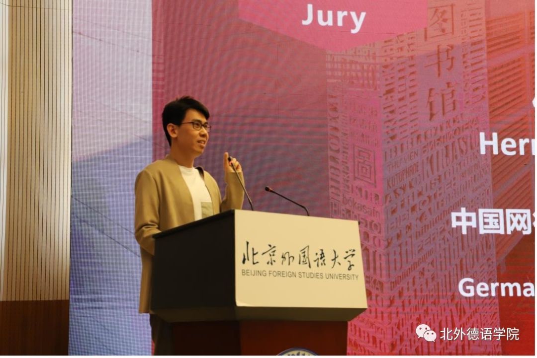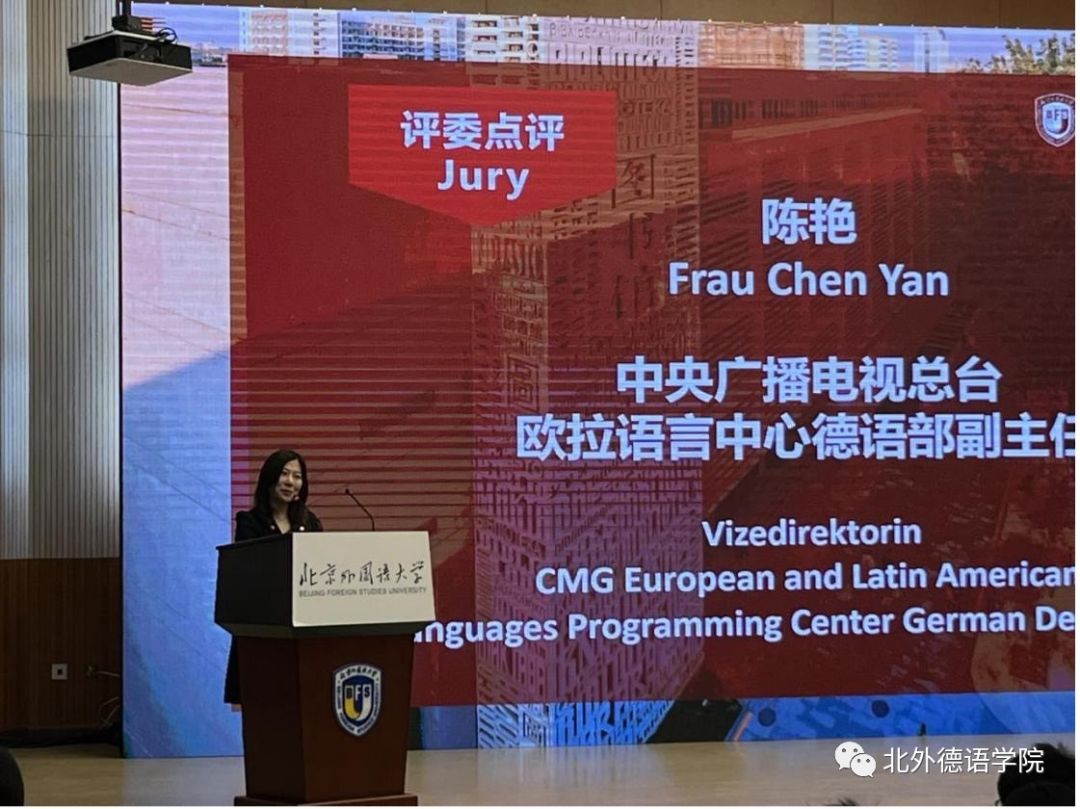 本届大赛决赛邀请了贾建新参赞、北外山东校友会会长、青岛鸿裕吉交通装备有限公司总经理秦思刚、中央广播电视总台欧拉语言中心德语部副主任陈艳以及中国网德语频道主编任斌担任评委。赛事环节由ky开元集团官网2019级本科生曹涵和2022级本科生黄婉茹用中德双语主持。