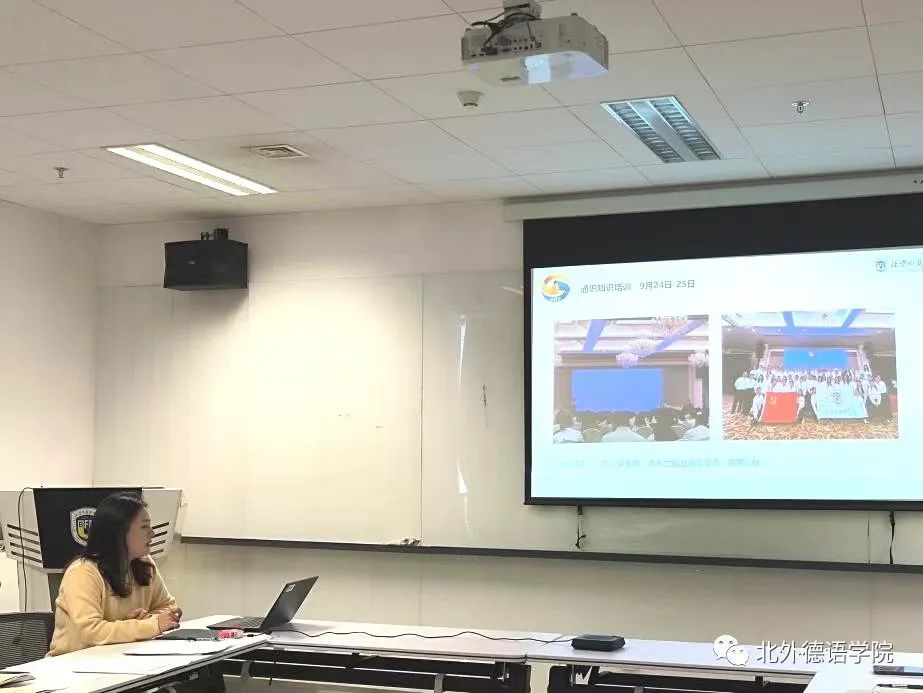 学院研究生会轮值主席、学生职业发展促进中心负责人刘丽丽分享了“一带一路”志愿服务工作心得,她提到作为北外德语人应谨记北外校训,继承北外传统,以青春之名传递中国温度,勇担讲好中国故事的时代使命。