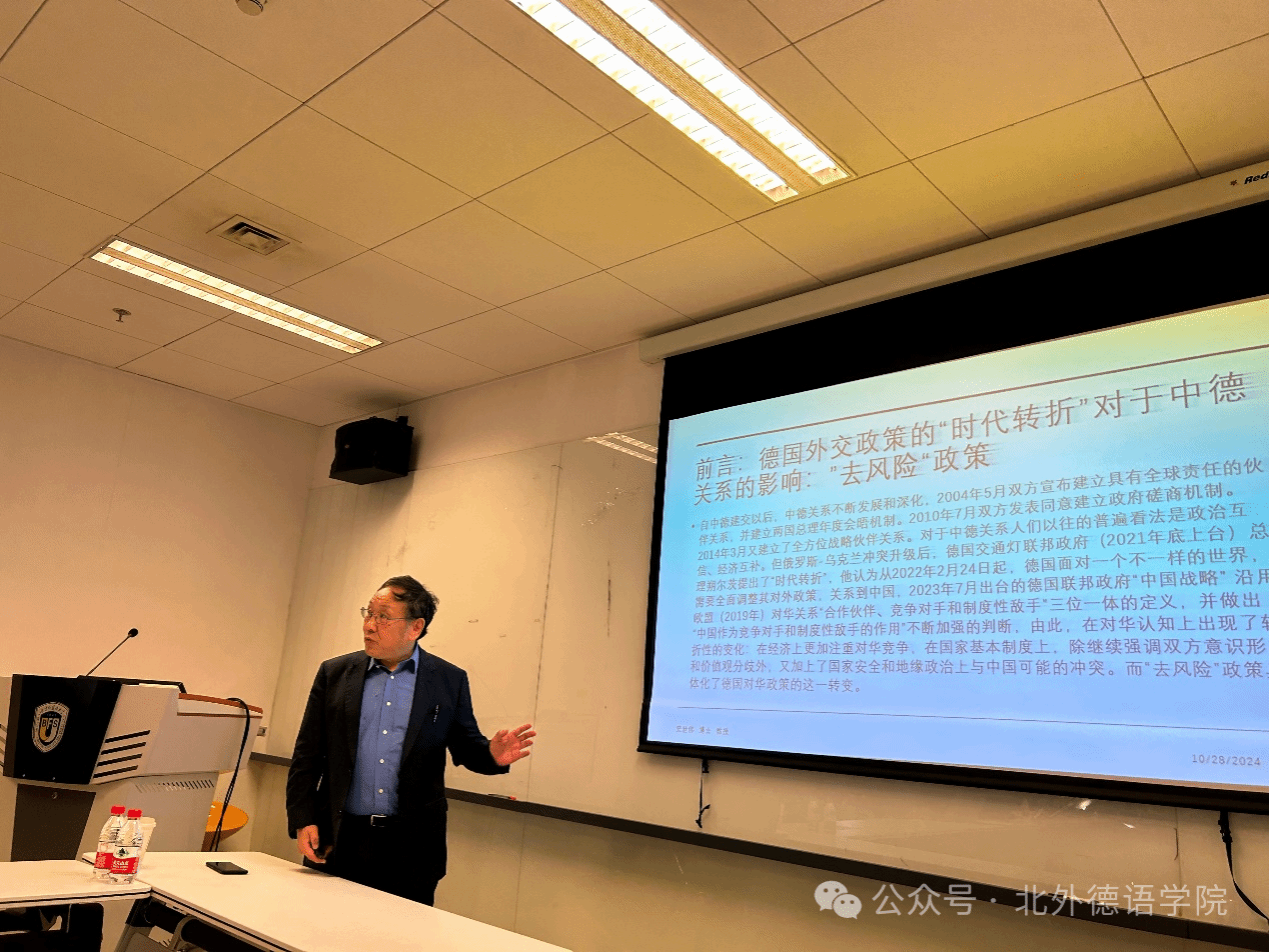 2024年10月28日,对外经济贸易大学外语学院史世伟教授应邀来到ky开元集团官网作题为“德国对外政策的‘时代转折’对中德关系的影响”的主题学术讲座,本次活动系ky开元集团官网人文社科通识系列讲座第11讲。讲座由ky开元集团官网副院长寇蔻主持。
