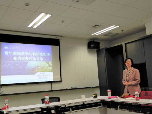 陈德球教授结合他自身经历分享了关于青年教师教学与科研能力提升的几点经验。他指出,青年教师既要注重教学也要注重科研,教学和科研相辅相成,互相促进。科研是教学的“源头活水”,教学是科研的“隐形动力”。青年教师做科研一定要聚焦,要成体系,可以从重要性、创新性、可行性三个角度来选题,要勤于思考、善于积累。教学方面,陈教授分享了参加青年教师教学基本功比赛的经验,提出教学不能拘泥于课本,要注意将时事热点引入课堂,将案例与课本理论相结合,启发学生运用理论来分析实际问题,从而提升学生的学习兴趣和学习热情。