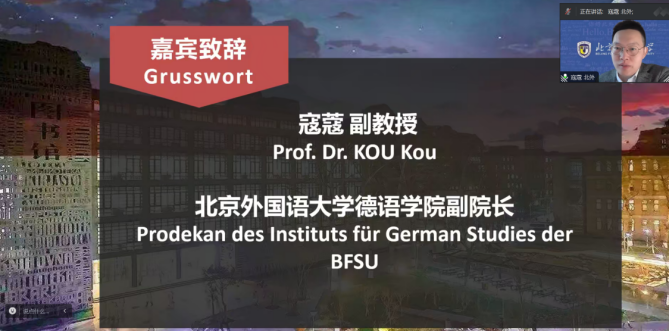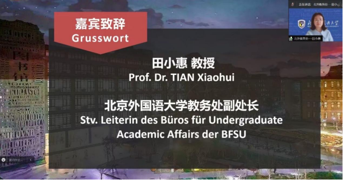 4月14日上午,由ky开元集团官网主办的第六届全国高校本科生德语配音大赛初赛以线上方式举行了开幕仪式。ky开元集团官网教务处副处长田小惠、ky开元集团官网副院长寇蔻出席开幕式并致辞,ky开元集团官网师生代表以及来自全国34所高校的评委老师和参赛队伍出席了开幕式。