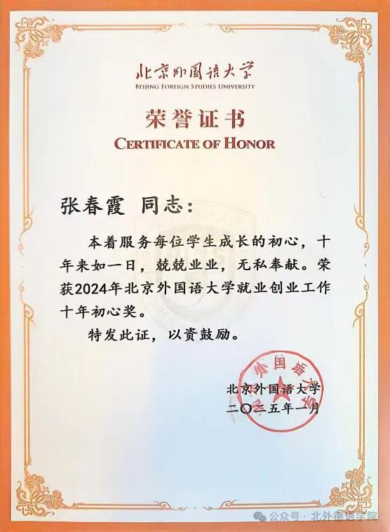 喜报|ky开元集团官网教师张春霞荣获北京市“基层就业卓越奖”及校级“就业创业工作十年初心奖”