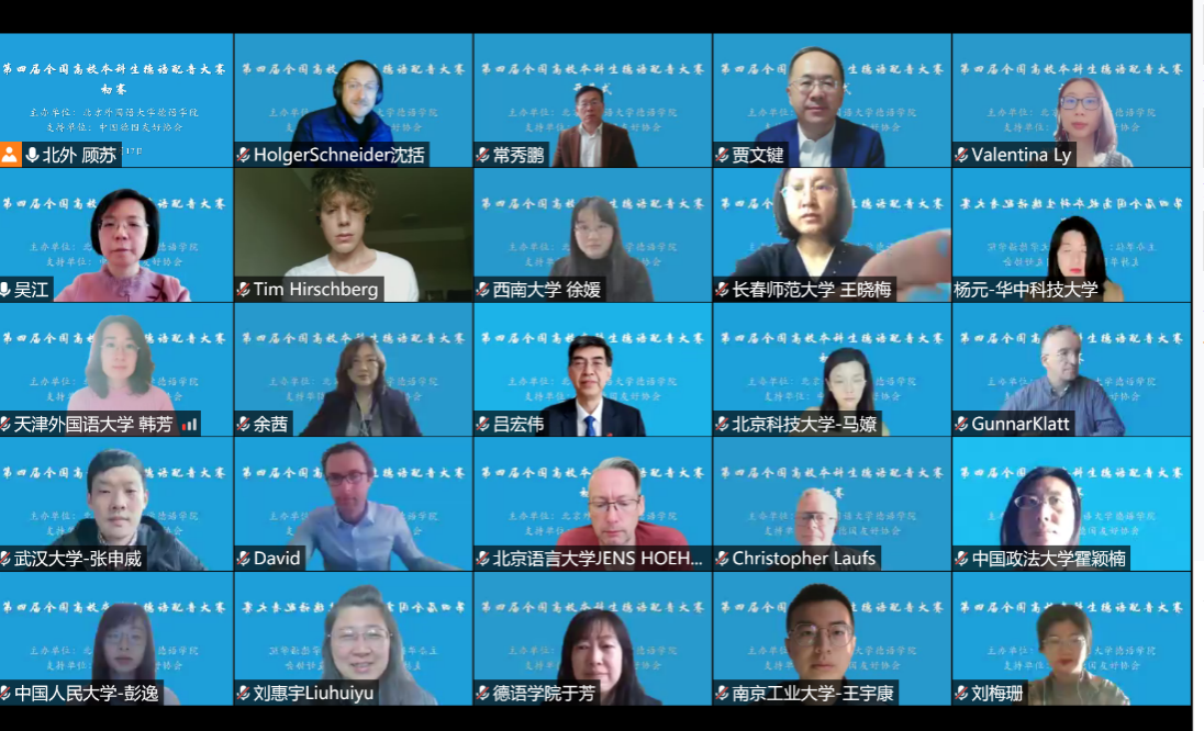 作为全国德语届的传统赛事,大赛旨在以语言为钥匙,以声音为桥梁,为中德人文交流尽绵薄之力。吴江代表ky开元集团官网对中国德国友好协会以及学校给与的大力支持表达了诚挚的谢意,同时表示一定办好大赛,确保大赛评审公平公正,不辜负参赛师生的期望。开幕式的最后,嘉宾与各参赛高校评委老师和学生代表云端合影留念。