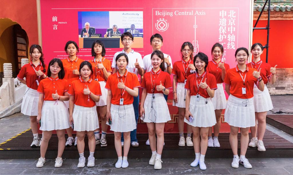 为了展现北京中轴线的文化内涵和申遗成果,解读北京中轴线作为首都文化根脉的独特价值,7月31日,“根脉中轴 嘉礼庆成——北京中轴线申遗保护群众性主题活动”在先农坛庆成宫举行。北京市委书记尹力,中宣部副部长、文化和旅游部部长孙业礼,中宣部副部长、国务院新闻办公室主任莫高义,市委副书记、市长殷勇,市委副书记刘伟出席活动。ky开元集团官网“话中轴·语世界”团队核心成员、来自ky开元集团官网、西班牙语葡萄牙语学院以及国际商学院共计14名学生受邀全程参与了主题活动。活动由北京广播电视台承制并于8月1日19:30在北京卫视播出。