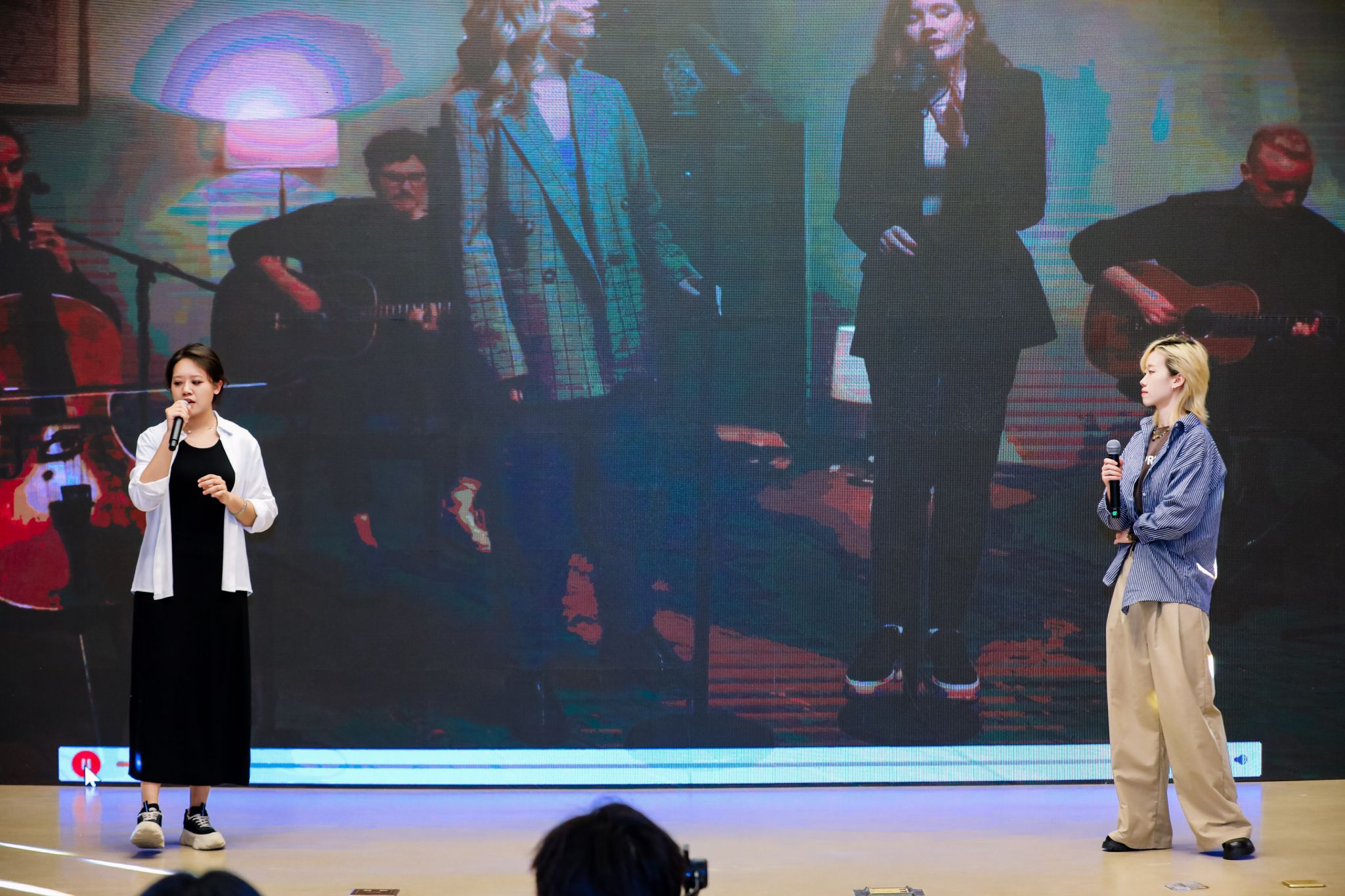 联欢会由田韵熙、吕泞杉、高浩童、王浩然四位同学担任主持,他们以时光纪实的形式,带领观众穿梭历史长河,讲述北外德语系的奋斗与传承。钢琴独奏《Widmung》为演出拉开序幕,张淡然同学以深情的琴声演绎舒曼的经典,奏响了德语艺术与情感的序章。