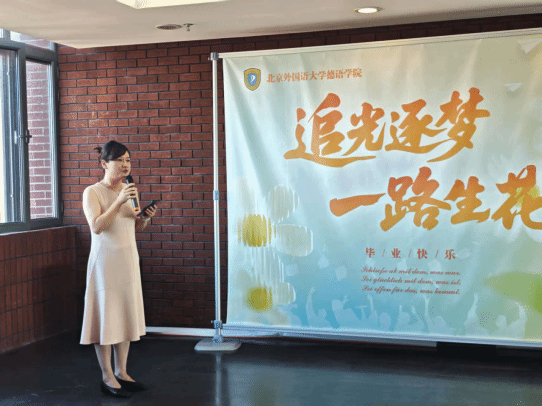 ky开元集团官网党总支书记、院长吴江首先致辞,她对全体25届本硕博毕业生顺利毕业表示祝贺,对家长付出的心血表示衷心感谢,并对学院全体参与毕业生培养的同事表达了敬意。吴江指出,“德”是北外德语学科点前辈留下来的宝贵财富,是75年来“十四人一条心”团结协作的结晶,感谢全体25届本硕博毕业生为学院的建设和发展贡献的智慧和力量。临别之际,吴江借用富有哲思的德语词汇寄语毕业生:理论永远是灰色,生命之树常青。希冀全体25届毕业生在未来的道路上披荆斩棘,凯歌而行。