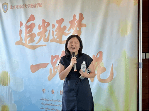 她深情回顾了从北外毕业后三次不同职业跨越式转型的经历,凝练出北外人特有的使命感、全球观与思辨力。她寄语毕业生以语言“元宇宙”校准世界脉搏,以终身学习锚定跨界价值,以向上向善温润文明,勇担北外人的时代使命。