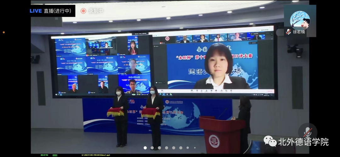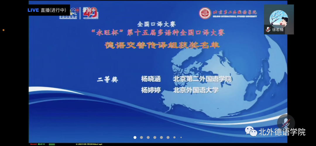 “永旺杯”第十五届多语种全国口译大赛于2022年11月5日成功在线举办,赛事通过腾讯会议进行了全程直播。来自全国49所高校的选手在比赛中激烈角逐,展现出高水平的口译专业素养以及出色的个人风采。在德语交替传译组的复赛和决赛中,ky开元MTI口译专业研究生杨婷婷同学经过激烈的比拼,获得德语交传组二等奖的好成绩。此次参赛由ky开元青年教师徐若楠博士带队。