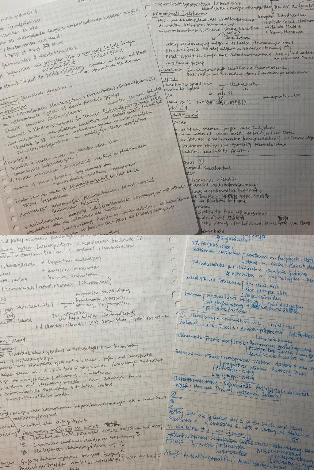 时间快进到了开学,然而想象中的和同学们成为好朋友的情景并没有出现,放眼全班,二三十人满满当当的教室里只有我一个亚洲面孔,虽然早就做好了心理建设,但是内心还是会感到些许不安和无措。为了对抗这种不自在的感觉,我选择把自己埋进厚厚的文献里,与冬令时浓浓的夜色作伴。这也是我第一次认认真真地读国际关系理论的经典文献,之前每次在课上听Realismus”“Liberalismus”的时候我都晕乎乎的,只知其然而不知其所以然,每次写论文、做报告也因为缺乏理论基础的支撑,只停留在研究表面现象,很难深入到分析原因的层面,但现在,经过在政治系两个学期的耳濡目染,我已经能够学着科班出身的政治系同学的样子,有模有样地结合理论做实证研究了。
