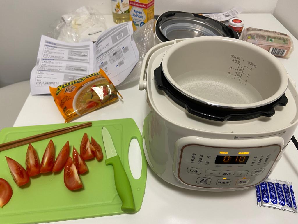 因为买错了锅,周日超市又都关门,只能用电饭煲煮泡面吃