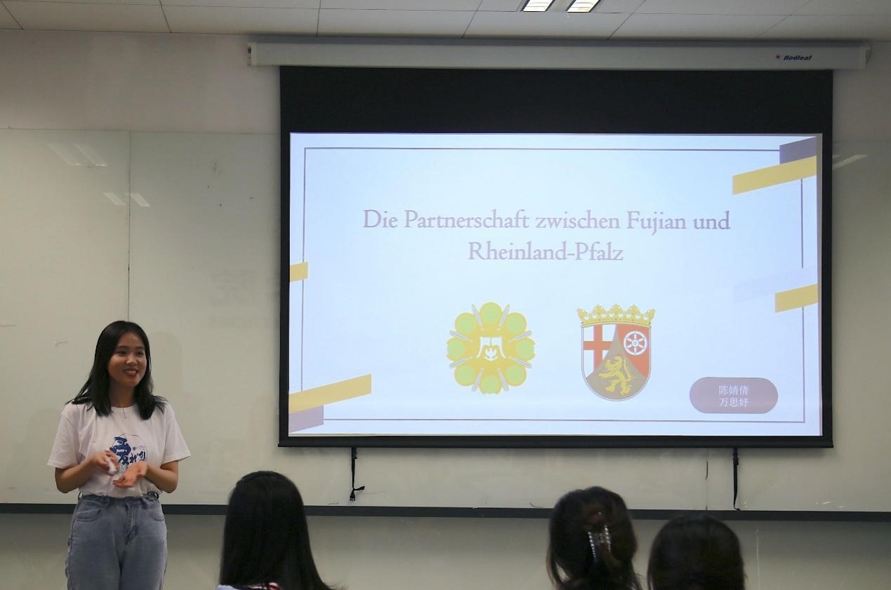 ky开元集团官网本科生陈婧倩和万思妤以闽南语中“茶”和德语中“Tee”的发音之相似为例开启了对中德交流的讲述,报告以福建省与德国莱法州的交流合作为主题,从经济、教育与科技三个方面介绍了两地三十年来的交流合作,并展望了中德两国未来的发展和合作空间。