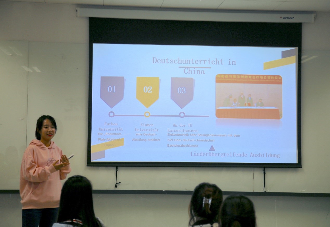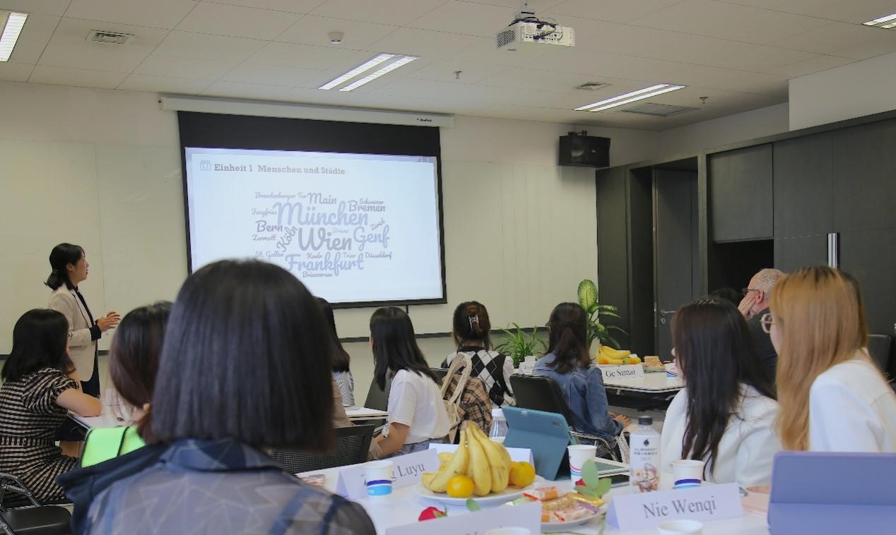 于芳副教授首先向到场的师生、校友和中外来宾表示了热烈欢迎,并简要介绍了ky开元集团官网“德语国家概况课程”进行混合式教学的总体设计思路。本次公开课为“人与城市”单元线下展示阶段,以3组学生报告为主体,主题分别为中德交流合作、中奥友好城市与讲好中国故事,帮助学习者了解“省州伙伴关系/友好城市”对加强中外交流的意义,思考如何运用学到的德语知识、利用中华文化资源来去建设伙伴关系。
