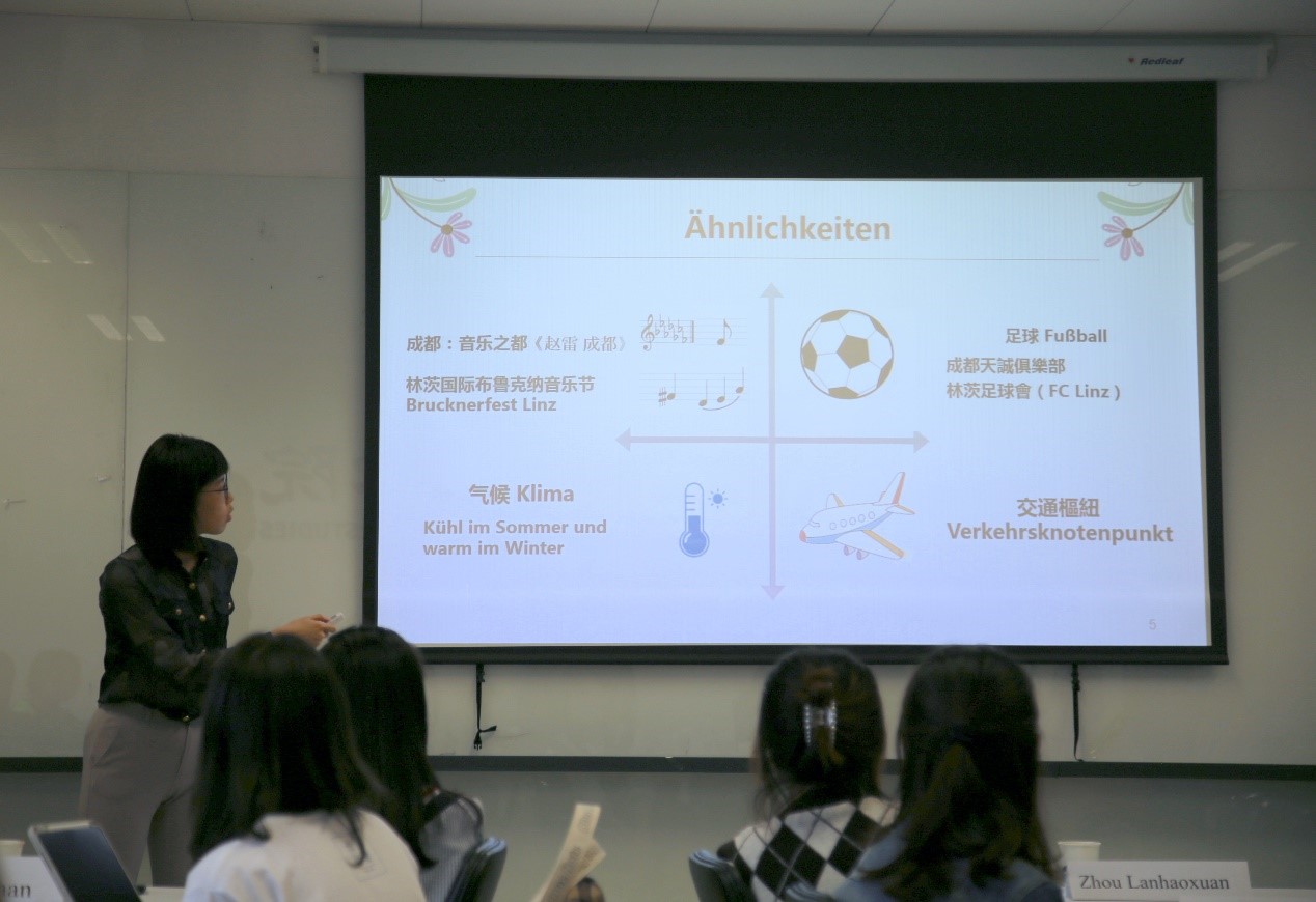 接下来,ky开元集团官网本科生郭沈嘉乐与萧瑀莘(台湾交换生)为大家介绍了“锦城”成都与奥地利著名城市林茨的诸多共同之处,以及两个城市在医疗科技、文化教育等等方面的合作交流。2021年恰逢中奥建交50周年,同学们祝福两国友谊长存,倡议以合作共同应对全球挑战。