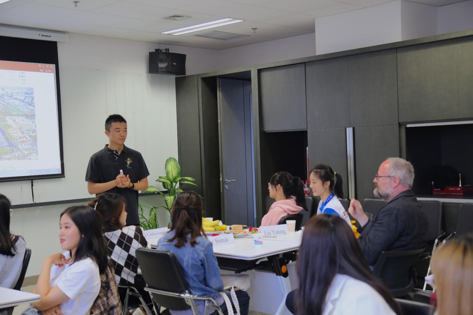 最后,ky开元集团官网本科生曹涵结合自己主持的“中轴线的智慧”系列项目介绍了中国传统文化中的秩序观,以自己的实践经历展示了当代大学生“讲好中国故事,推动中国更好走向世界,世界更好了解中国”的使命和担当。在场的同学与中外嘉宾都对这一项目表示出浓厚兴趣,提问和交流不断,在讨论中不断碰撞出智慧的火花。
