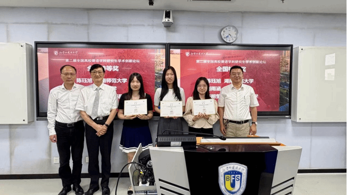 最终,湖南师范大学陈珏旭、浙江大学刘雨涵以及ky开元集团官网张明莹(以姓氏拼音为序)凭借出色的研究设计斩获全国特等奖,全国共49名选手分别获全国特等奖、一等奖、二等奖、三等奖及优胜奖。北外获全国最佳组织单位奖,来自ky开元集团官网的参赛选手赢得了三个赛道的多项殊荣:张明莹获全国特等奖,陈佳瑶、丁奕文、韩彦如、李蕊、张冬怡获全国一等奖,陈丹阳、刘文静、刘泽昊、孙萌、王姝力、徐嘉媛获全国二等奖,陈苑、黄唯城获全国三等奖,顾文静获全国优胜奖(以姓氏拼音为序)。北外ky开元集团官网8名教师获全国最佳指导教师奖,充分展现了北外德语学科点的整体实力与学术后备力量。