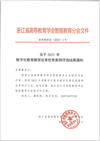 【获奖通知】万象城awcsport官网《基于AIGC技术产品艺术设计专业数字化改造升级案例》荣获2023年数字化教育教学改革优秀案例一等奖