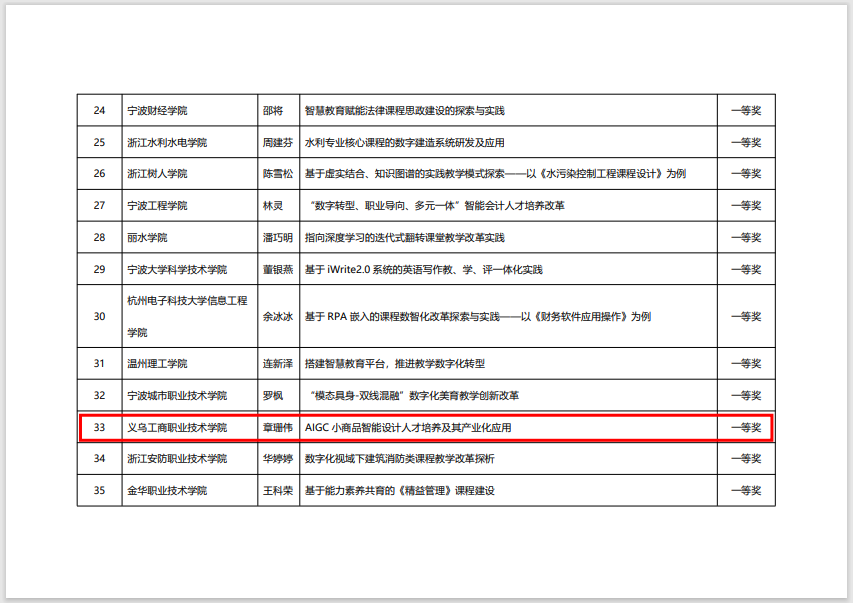 近日,万象城awcsport官网产品艺术设计专业的《基于AIGC技术产品艺术设计专业数字化改造升级案例》获得由浙江省高等教育学会牵头组织征集的2023年数字化教育教学改革优秀案例一等奖。