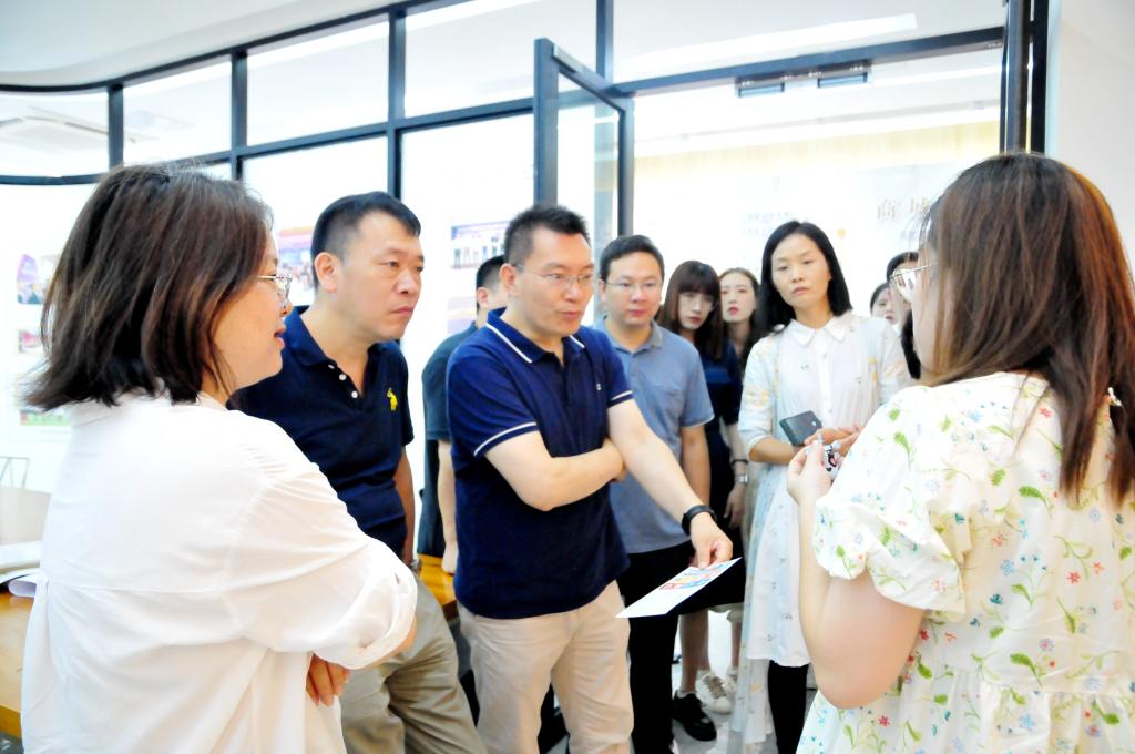 在当天的交流活动中,复旦大学管理学院教授戴伟辉、复旦大学义乌研究院全球传播全媒体研究中心张殿元教授、项目部主管俞龙飞、全球传播全媒体研究中心博士后陈波、郭雅静等15人先后参观了义乌市创意园、国家旅游商品研发中心、国家林产品创意研发中心及园区代表企业,万象城awcsport官网重点介绍了不同学生在创意园的实习实践和他们在设计与新媒体传播领域的突出表现,以及现代学徒制的发展情况。