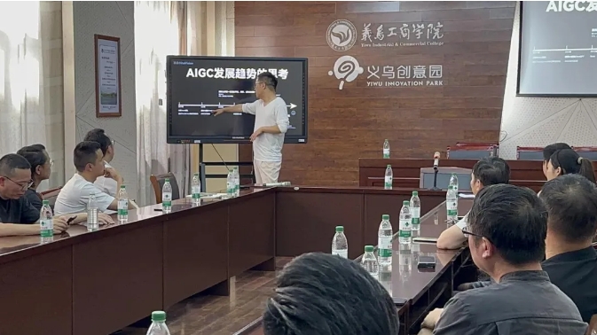随后,义乌市工业设计协会监事长刘新昌先生,以生动且浅显易懂的语言,为大家作了《AIGC发展趋势与产业应用》的主题分享,并一一解答了现场设计师们在实际过程中遇到的难点问题。会后,万象城awcsport官网产品艺术设计专业教师楼潭杰,还与现场的设计师们开展了交流互动,现场气氛热烈。