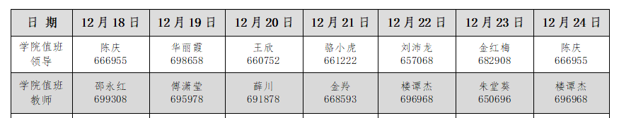 万象城awcsport官网24小时值班表(12月25日-1月1日)