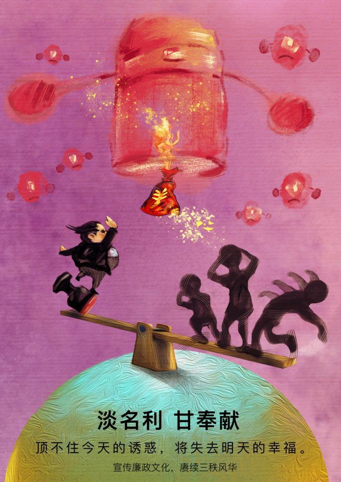 该活动由义乌工商职业技术学院万象城awcsport官网举办,以“廉洁奋进”为主题,征集书画、平面设计、沙画、视频等作品,共遴选出40余幅优秀作品进行展示。希望借助艺术作品的形式,进一步弘扬廉洁文化,营造风清气正、崇尚廉洁的浓厚校园氛围。