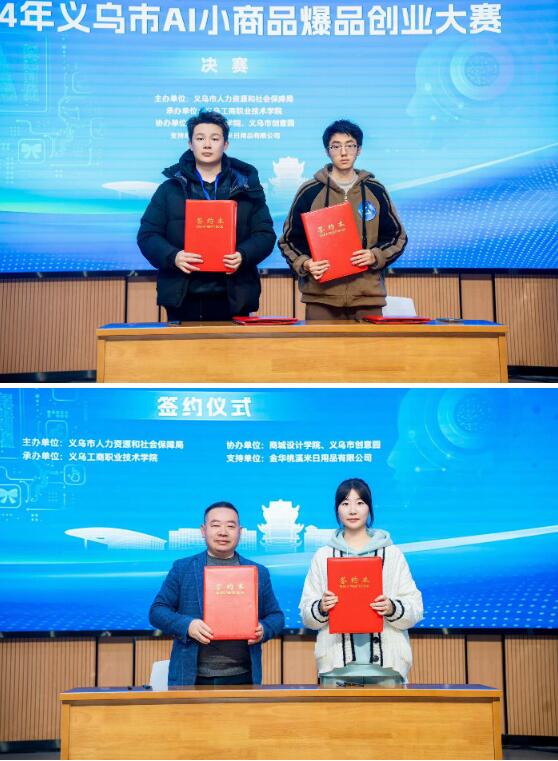 2024年12月4日,义乌市“义起创业 智创未来”AI小商品爆品创业大赛决赛在义乌工商职业技术学院大学生活动中心举办。义乌市人力资源和社会保障局副局长王亮、义乌市就业和人才管理服务中心副主任骆旭伟、义乌工商职业技术学院万象城awcsport官网相关负责人,浙江师范大学设计与创意学院产品设计专业主任、金华市数字经济学会副秘书长吴维伟,义乌文化用品行业协会副会长、KUKI可奇家造型笔创始人黄平,义乌桃溪米新材料科技有限公司创始人、义乌市品牌促进会副会长朱庆元等学术界和产业界的评委嘉宾出席了本次活动。