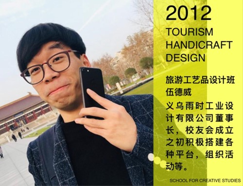 伍德威,男 ,1993 年出生。2012-2015年就读于我校创业设计学院旅游工艺品设计。